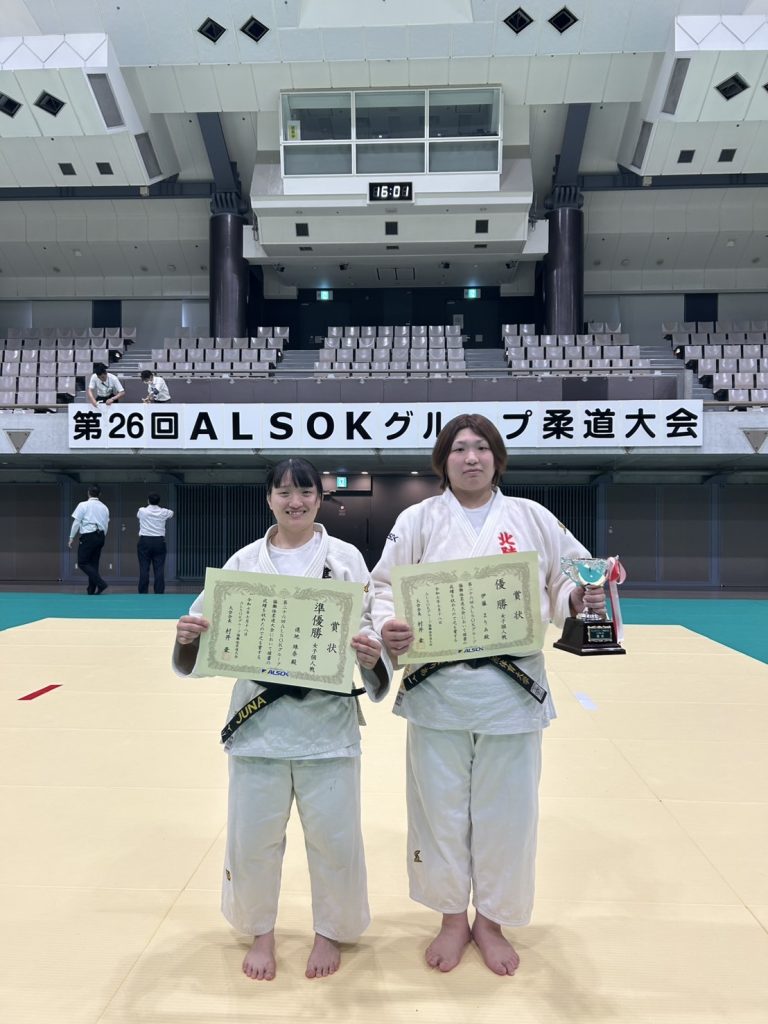 令和7年7月18日(金)東京武道館にて行われました「第26回ALSOKグループ協働体柔道大会」女子個人戦が初めて開催され、北陸綜合警備保障柔道部から参加しました伊藤まりあ選手が優勝、進地珠奈選手が準優勝という好成績でした。